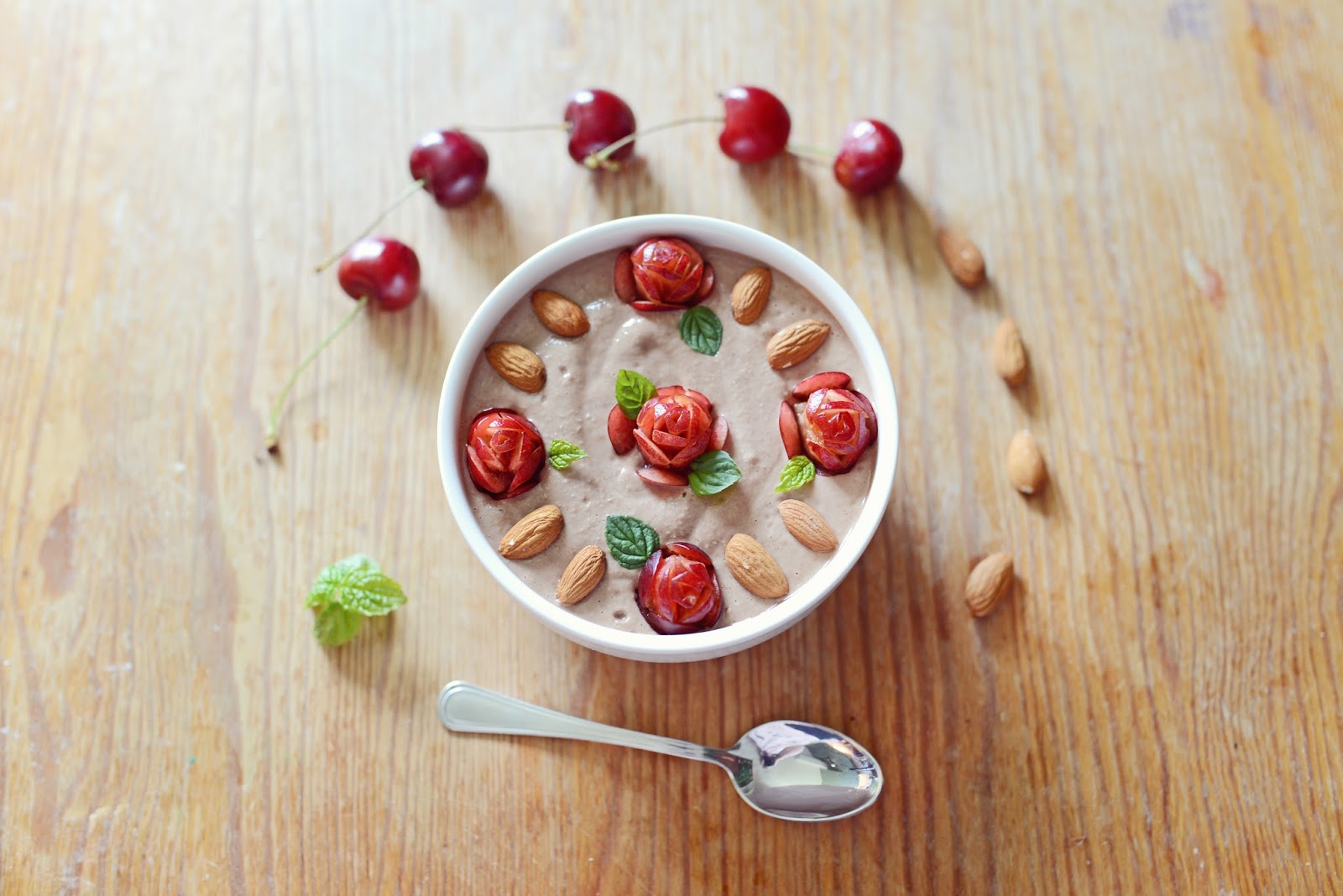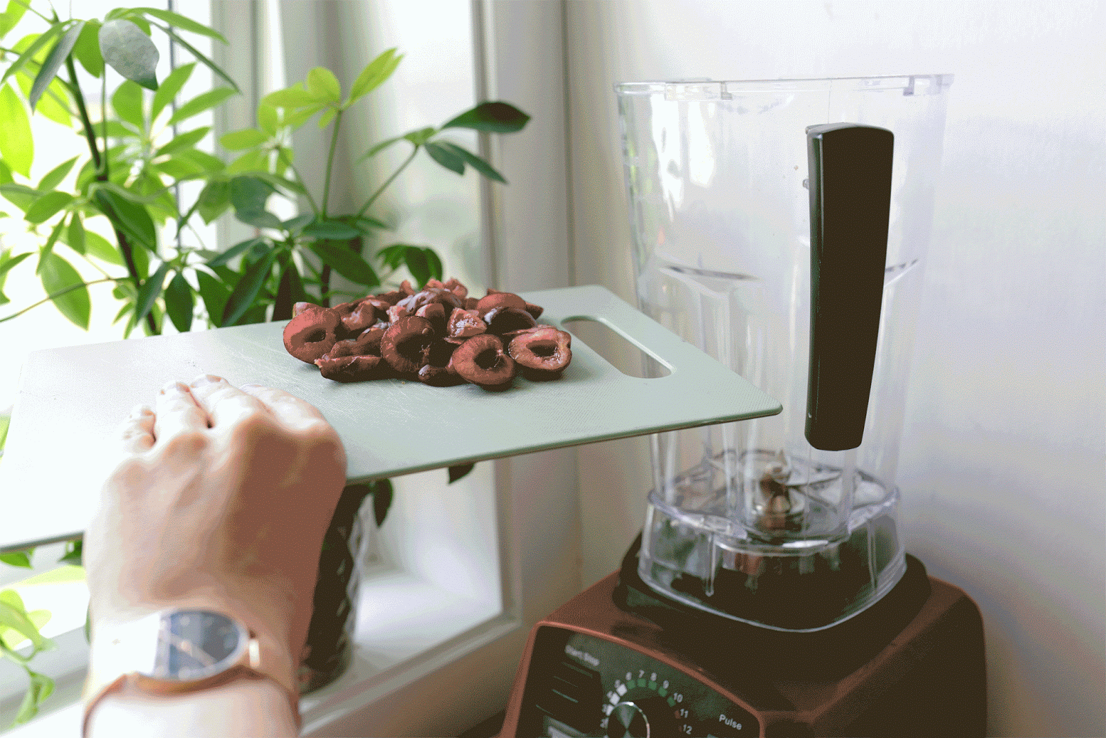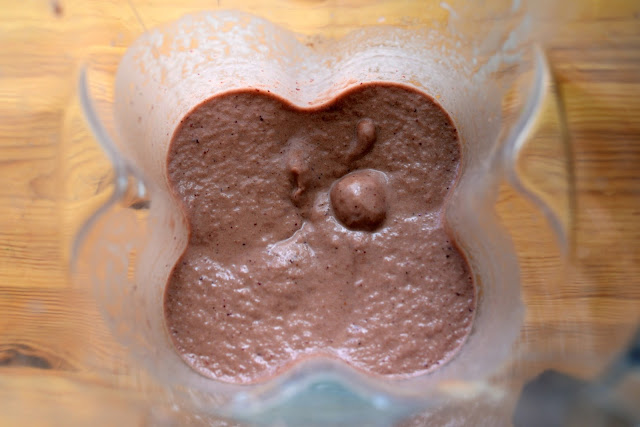 Throw it all in the blender and blend blend blend. Adjust the consistency with almond milk, keep it mind it needs to be quite thick to hold the toppings.